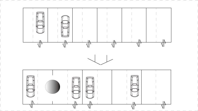 こうする事でたんなる駐車場として利用する時にも台数が増える事になります。