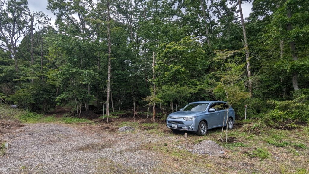 この時はまだ自生していた桜を車の手前に植替えていましたが… 次の日に続く