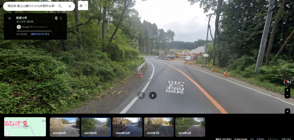 (↑同じ場所からのスクショ カーブしている部分が車泊場に半分程度かかっていた)